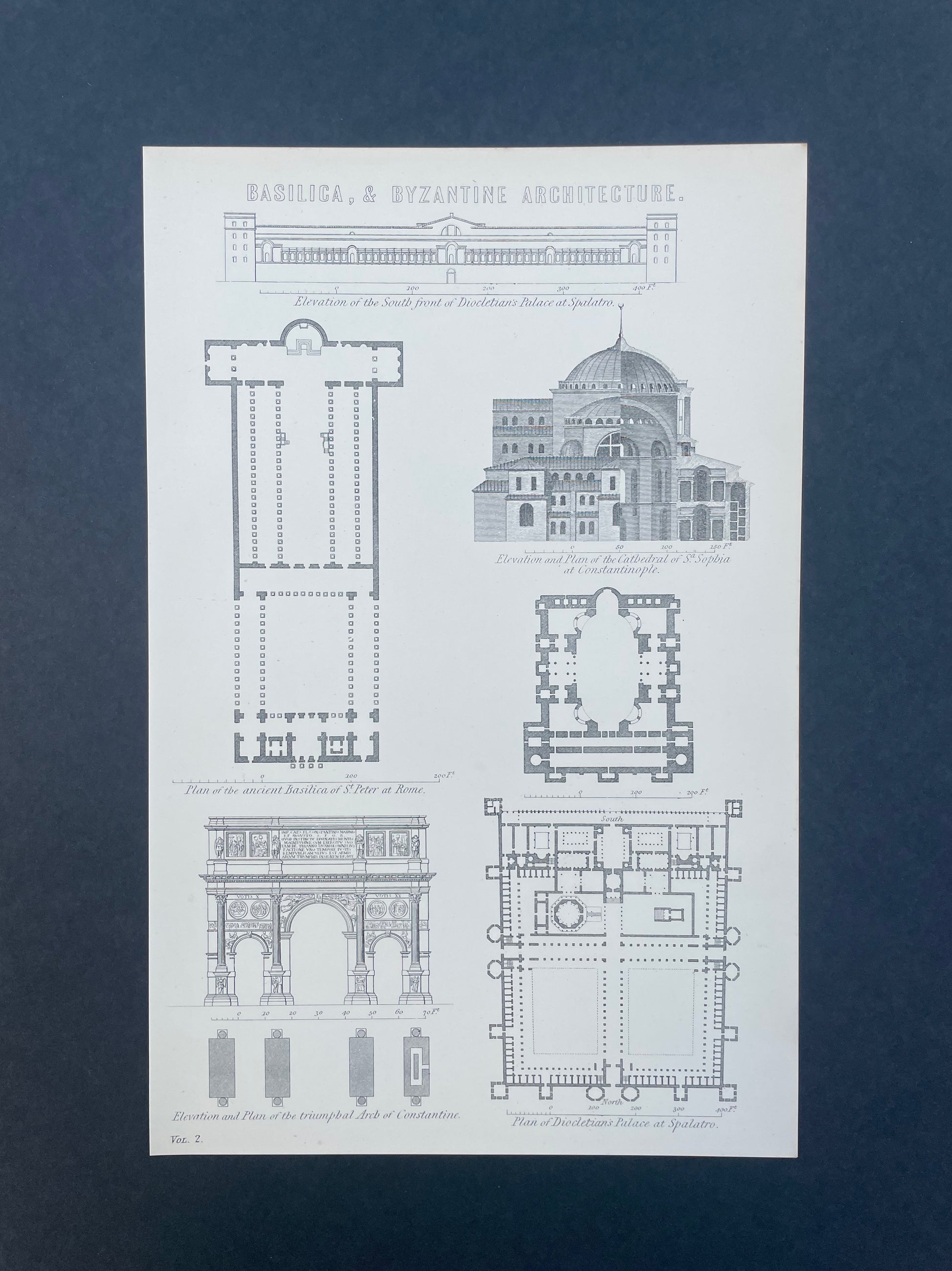 Original scientific engraving of Bascilica and Byzantine Architecture